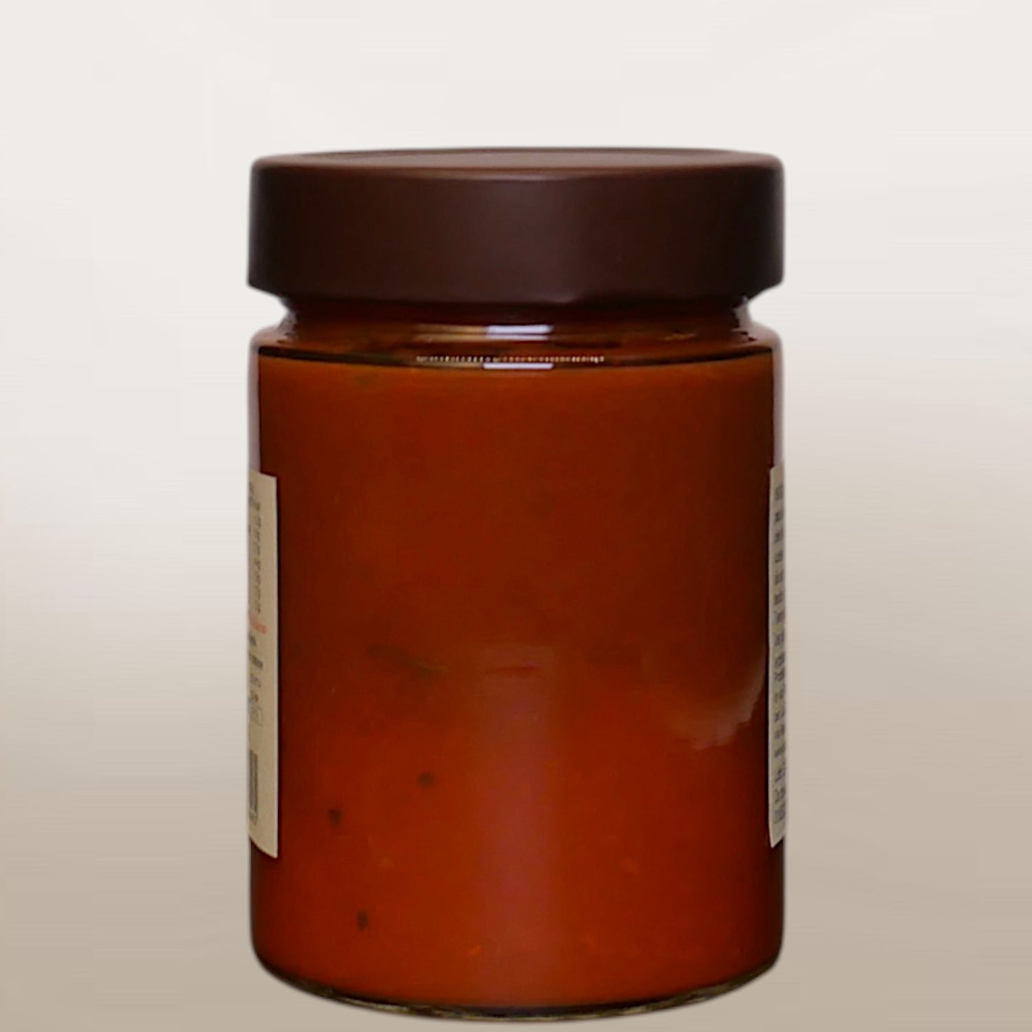 Pomodori datterini pelati 67%, polpa di pomodoro, lardo 2,5%, zolle di aglio 1,5%, vino bianco (contiene SOLFITI), sale marino integrale, olio extra vergine di oliva, basilico, peperoncino piccante.